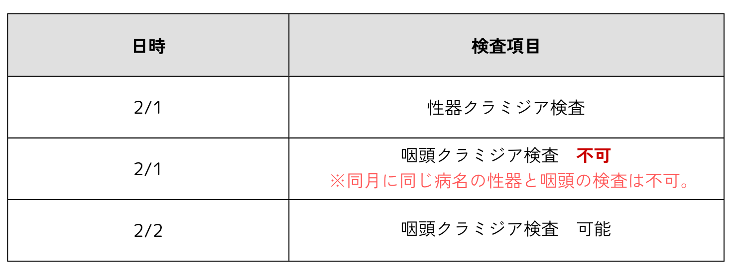 例えば、泌尿器科に来られたクラミジア尿道炎の方に、咽頭の検査をしようとしても、同じ月だと検査が認められません。